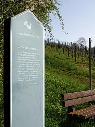 Es sind zehn Stellen innerorts und fünf weitere außerhalb des Ortskerns. Sie sind durch Tafeln oder Stelen gekennzeichnet, auf denen hierzu passende Mörike-Zitate festgehalten sind.