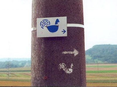 Der etwa 1,5 Stunden dauernde Wanderweg ist deutlich mit einem stilisierten Turmhahn gekennzeichnet.